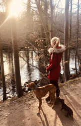 Zur Zeit lebe ich mit meinem Hund in der Stadt, wo ich studiere. Ich vermisse das Land, wo ich groß geworden bin. Kühe, Pferde, Hühner, alle Tiere sind mir lieb.